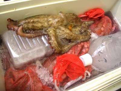 海水浴へ行って水着を着て~・・・みたいなものじゃなくて、ただひたすらにタコばかり釣っていました。