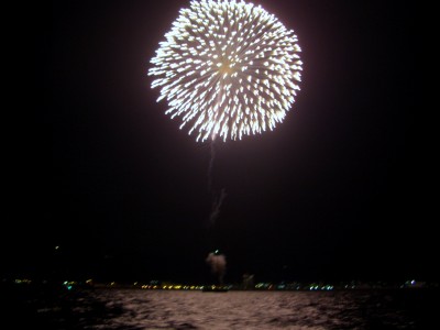 過酷なバイトで疲れていましたが、LEDライトを散りばめたかのような大きな打ち上げ花火と、身体全身に伝わる爆発音に癒されました。