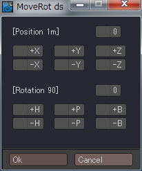 「0」は移動・回転の初期値(0,0,0)へリセットします。