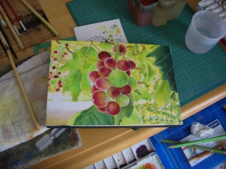 (円型定規があるけど、ブドウの丸を描くとかに使ったわけじゃないよ。別の事で使っていたものが出しっ放しだっただけです・・・工作版もそうですw)