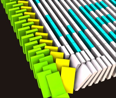 今のところ、2000個分のドミノの動きを付ける事が出来たかな?