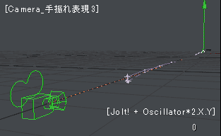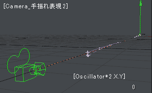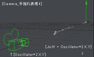 Jolt!はランダムな振動表現に使えますが、これだけでは手振れのゆったりとしたブレが出せないので、一度、Jolt!をオフにして「Oscillator」を2つ追加してX軸Y軸をランダムに反復させてみます。