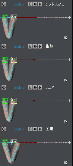 SoftIKの種類は「指数」、「リニア」、「固定」の三種類。