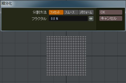オブジェクトのアイテムプロパティを開き、サブディビジョン手順を「一番終り」にして「色・質感編集」パネルを開きます。