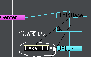 「Bake_UPLeg」を選択した状態で、スケマティックビューでctrlキー押したままIKBaseのボーンを選択して親子関係を変更。(その場でペアレントはON)