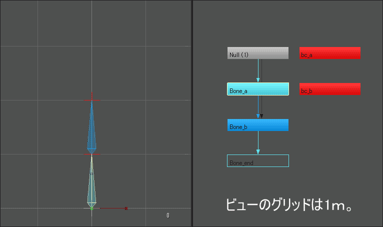 しかし、Expressionを適用した子ボーンbを直接H・P回転するとボーンの形状が歪んでしまう為、これをExpression用のボーンとし、新たに追加した子ボーンをBone_bとして利用します。