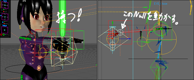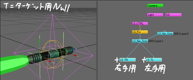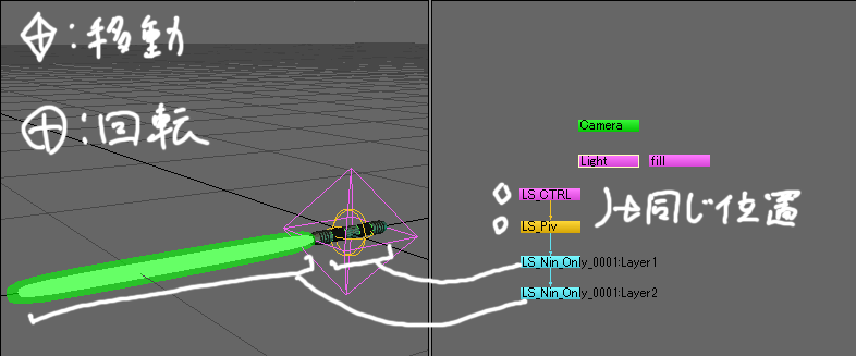 まずはライトセイバーの配置をこのように【LS_CTRL】で移動&回転します。
