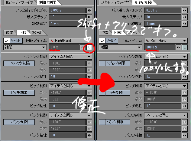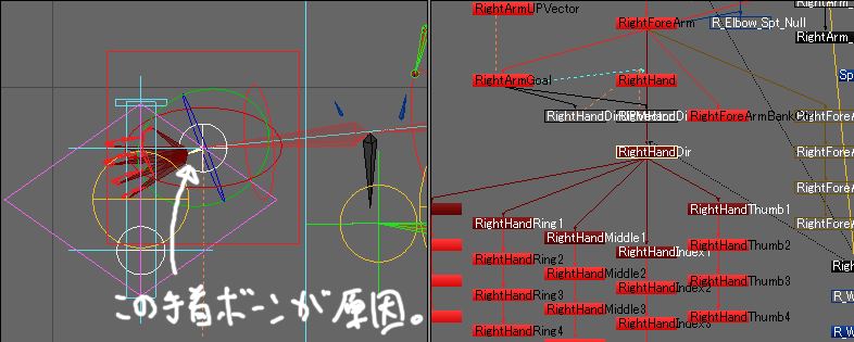 この時、【RightHandDir】で回転を修正することは出来ません。
