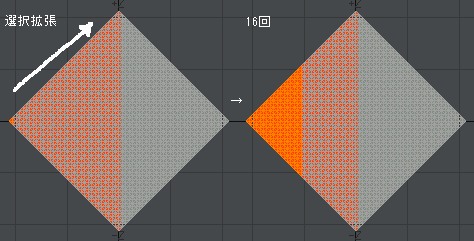 (画像では16回と書いてありますけど、最初のポリゴン選択+拡張回数を含めての16回です。)^^;