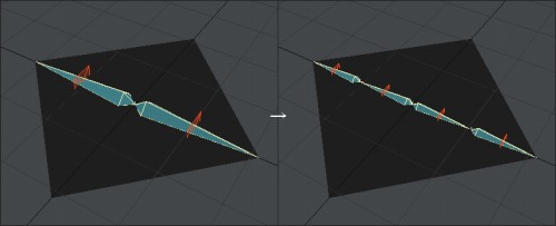 10.この段階でボーンをピッチ回転させるだけでも折り紙の最低限な変形をしてくれますね。