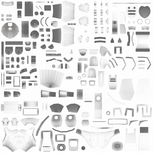 レンダリングするとAOのUVマップイメージが出力されます。
