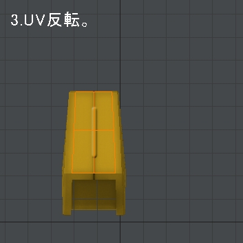 下の画像のように映し鏡のような結果になってしまうパーツが存在するので、この場合は展開したUVのポリゴンを反転して上手く使いまわしていきます。