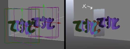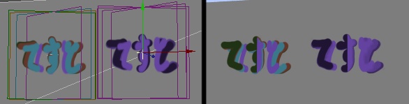 モデラーで作成した「てすと」オブジェクトを追加。回転させて中心点で交差しています。