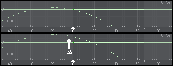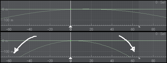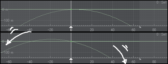 タイプBはタイプAと違って曲線付けの始まりと終わりのフレーム範囲を決める事が出来て、それ以外はタイプAと変わりありませんが弧を描く大きさを調整するのが少し難しい感じがします。