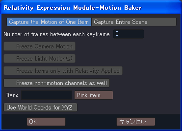 【Output World Coods】・・・選択しているアイテムのワールド座標系のモーションをベイクする。