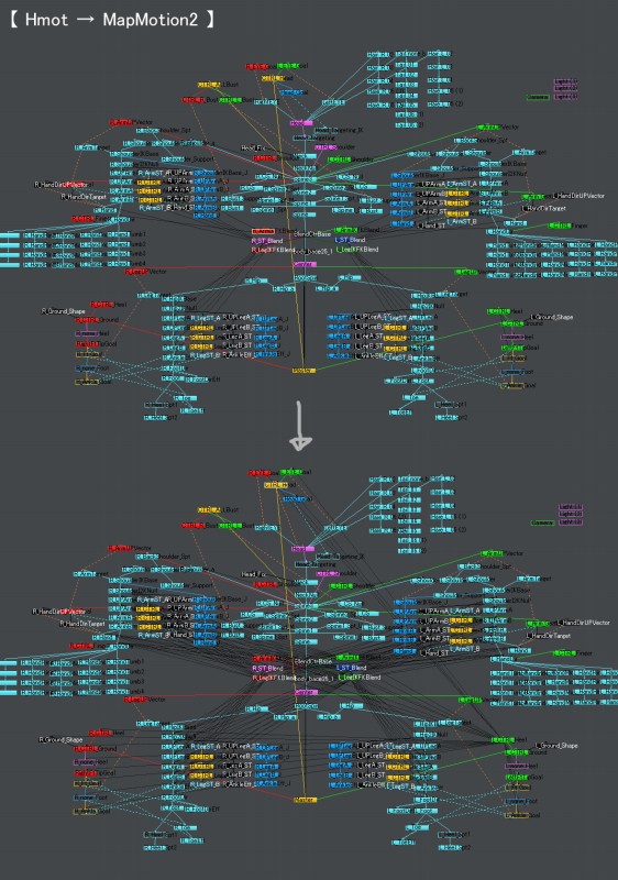その後、手付けやモーションファイルのSave&Loadを繰り返しても不具合やスケマティックビューがこれ以上変化することはありませんでしたので、モーションファイルの読込後にはこういう仕様になってしまうんだなと勝手に解釈しています。