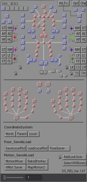 座標軸の切り替え、ポーズのセーブ&ロード、モーションのセーブ&ロードなど、手付けの時に必要なものを用意している最中です。