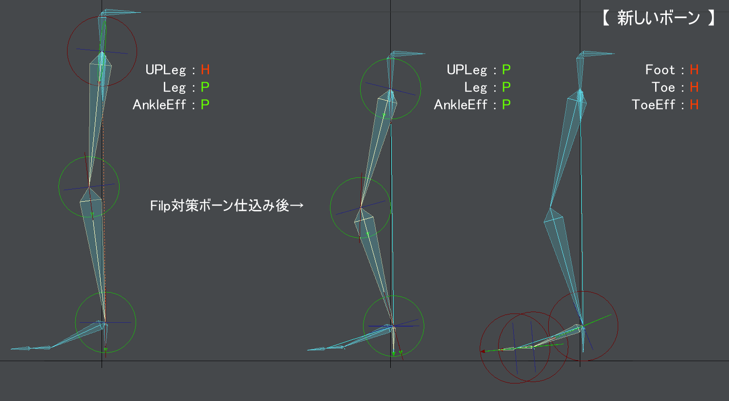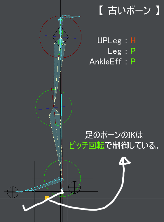 前に紹介したFootDirのやり方では足の中心にボーンを合わせるのがめんどくさかったので・・・戻しました。