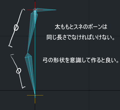 脚のボーンは下の画像の様に、弦を張った弓のような形状が好ましいです。