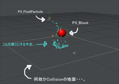 今回のテストでは、パーティクル生成アイテム(PX_FluidParticle)と、障害物(PX_Block)を使います。