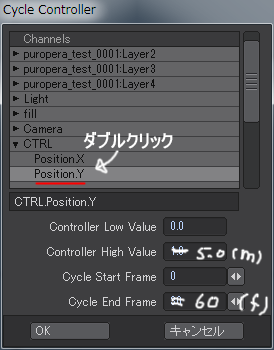 「Cycle End Frame」は、御覧の通り、どの動きの範囲をサイクルさせるかをフレーム数値で入力します。