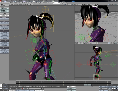 この変更で、非常にモーション付けが楽になりましたし、不自然なポリゴン変形も回避する事が出来ました。