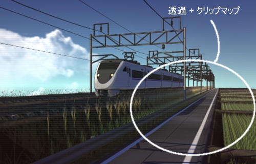 ・草むらや髪の毛などの短冊状のポリゴンを作る時、透過状態のポリゴンが重なると加算されたかのように内側にあるオブジェクトまでもが透ける。