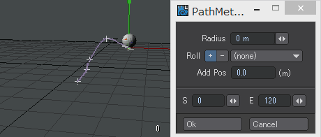 手付けで球を転がす為のLスクリプト「PathMeter_Roll」を作成。