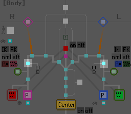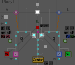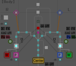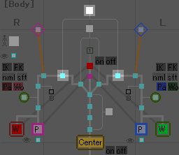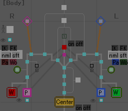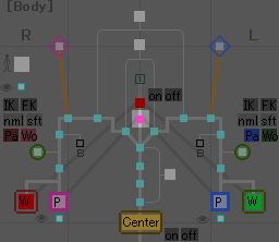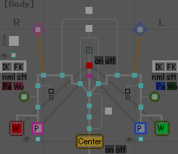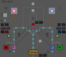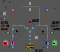 これを押すと脚のIK/FK切り換えが出来るようになります。